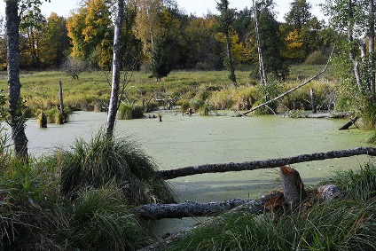 - Die nicht länger durch den Menschen eingeschränkte Aktivität der Biber trägt zu weiterer landschaftlicher Vielfalt bei: Entlang von Bächen werden die freien Fließstrecken immer wieder durch Biberseen und ausgedehnte Sumpfflächen unterbrochen. Wird ein Biberrevier aufgegeben, weil die bachbegleitenden Weidenbestände übernutzt sind oder die Biberfamilie Prädatoren zum Opfer fällt, dann können sich aus den Biberseen- und sümpfen artenreiche Biberwiesen entwickeln. Die Wölfe stellen auch sicher, dass sich die Weiden und Erlenbestände an den Bächen regenerieren und dass so immer wieder neue Ansiedlungsmöglichkeiten für Biber entstehen. Die Aktivität der Biber sorgt auch dafür, dass die aus Tschechien zuwandernden Elche sich länger hier aufhalten und das Großherbivoren Spektrum vervollständigen.